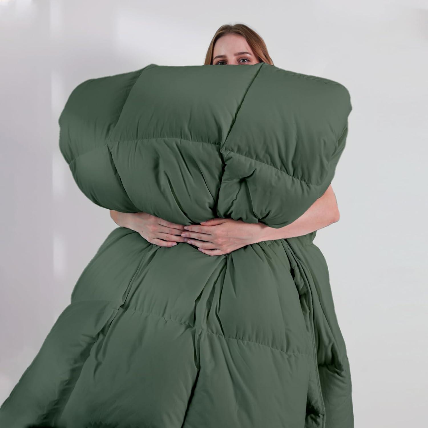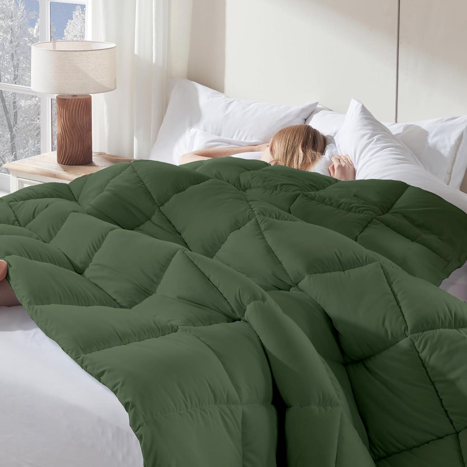 DOWNCOOL Comforters Queen Size, Duvet Insert,Black All Season Duvet, Lightweight Quilt, Down Alternative Hotel Comforter with Corner Tabs (Black, Queen 88x92 Inches)(Green)