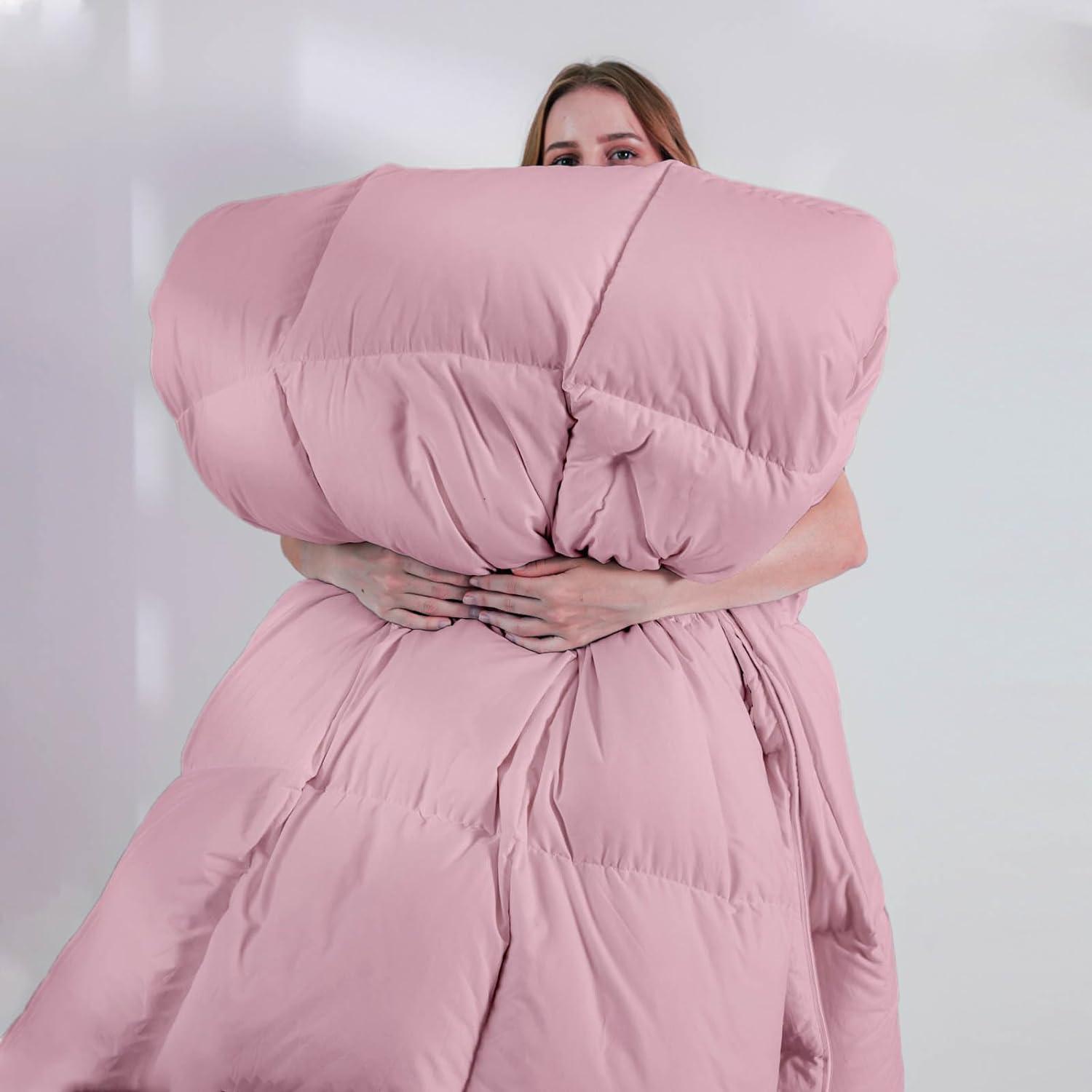*88×92 Inches queen skin friendly comforter* 3D&7D goose down alternative filling, weighted not too heavy to pressure, feel comfortable in all seasons.