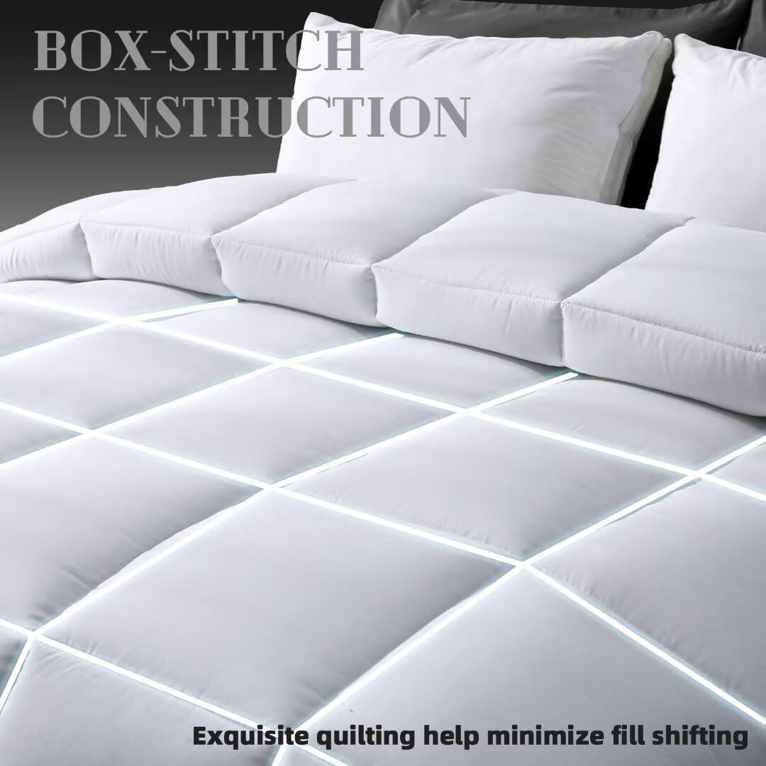 *88×92 Inches queen skin friendly comforter* 3D&7D goose down alternative filling, weighted not too heavy to pressure, feel comfortable in all seasons.