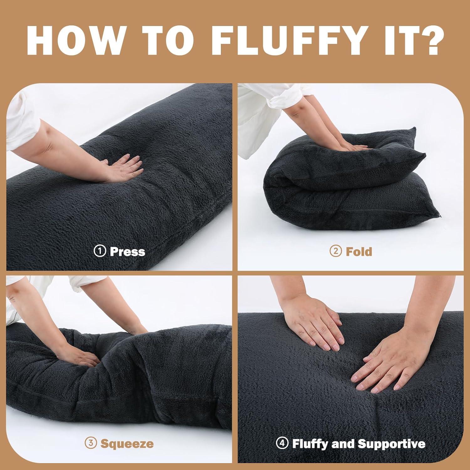 DOWNCOOL Luxury Full Body Pillow Insert with Fiber Cover – Ultra Soft Body Pillow for Sleeping – Breathable Long Bed Pillow Insert, 20″x54″(Pink, with Cover)(Faux Fur-grey)