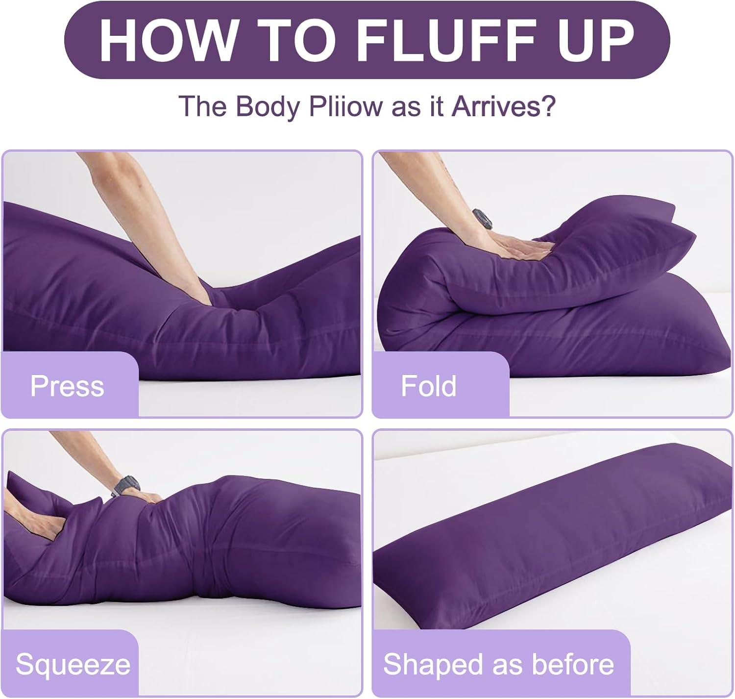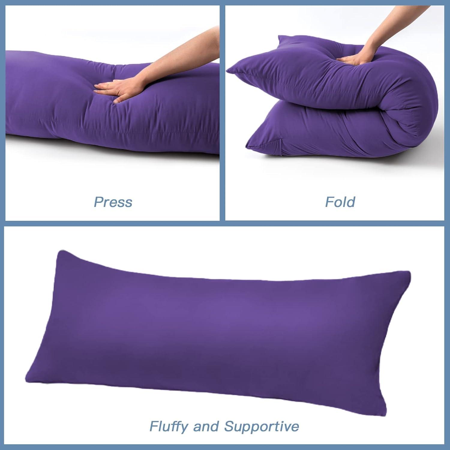 DOWNCOOL Luxury Full Body Pillow Insert with Fiber Cover - Ultra Soft Body Pillow for Sleeping - Breathable Long Bed Pillow Insert, 20"x54"(Pink, with Cover)(Purple)