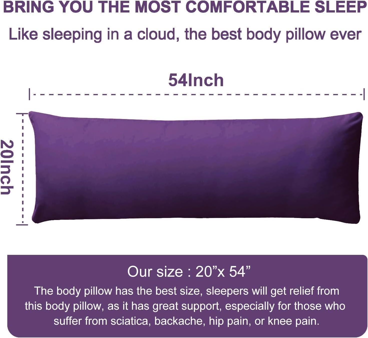 【LUXURY BODY PILLOW】Each order includes 1 pillow insert+1 100% polyester microfiber body pillowcase.No need to purchase a separate pillowcase,keeping you cool and comfortable all night long. It measures 20 ” x 54 ”.