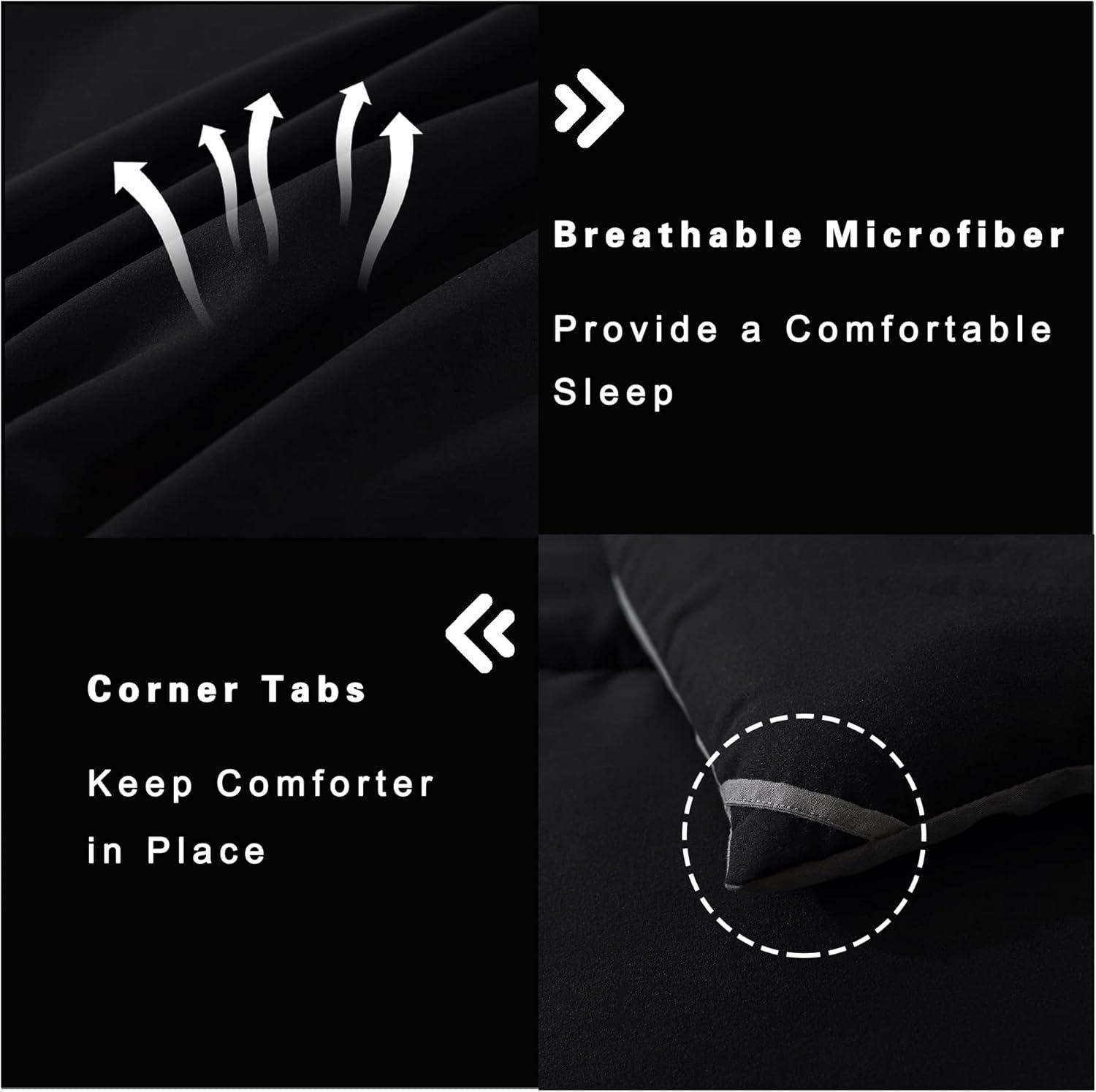 DOWNCOOL Queen Comforter Set -All Season Queen Bed Set with 2 Pillow Cases-3 Pieces Bedding Sets Queen -Down Alternative Black Comforters Queen Size(88″x90″)(Black)