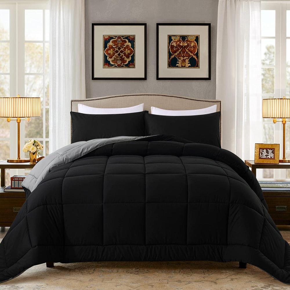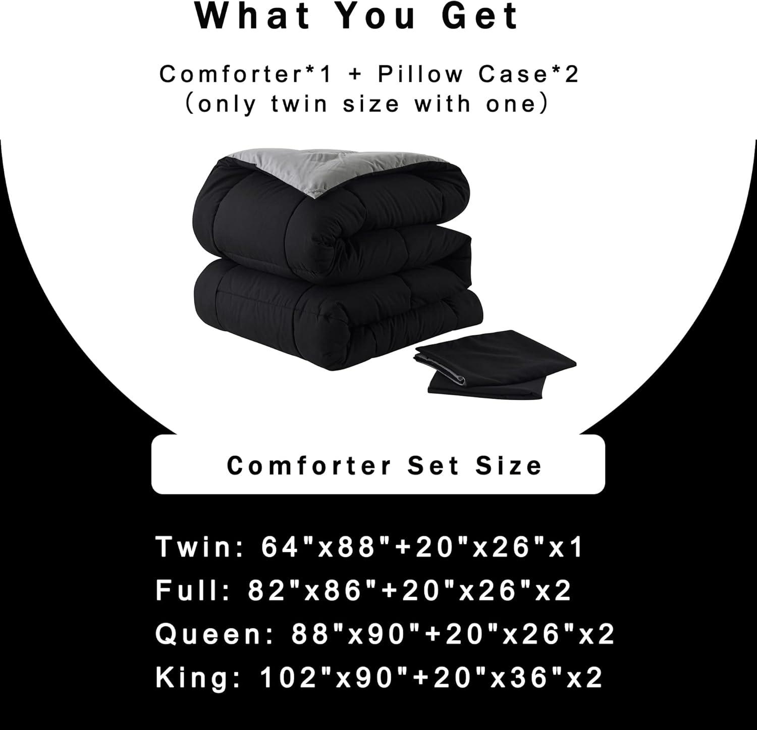 DOWNCOOL Queen Comforter Set -All Season Queen Bed Set with 2 Pillow Cases-3 Pieces Bedding Sets Queen -Down Alternative Black Comforters Queen Size(88"x90")(Black/Grey)